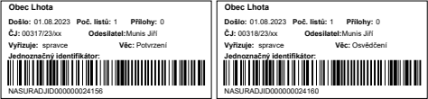 Protože zatím není úplně jasné, jaký bude skutečný prostor pro rozplánování všech změn, nelze v současné době přesně navrhnout celý jízdní řád aplikování všech novinek. Jedna věc je ale i přesto naprosto jasná. Je nanejvýš vhodné začít ihned – a to s tím, co je jasné, zřejmé a hmatatelné. Například zavedení nahrazení otisku podacího razítka tiskem štítků obsahujících již také jednoznačný identifikátor dokumentu (viz Obr. 1). To může být první jasný krok, kterým lze vykročit na cestu změn výkonu spisové služby dlážděnou všemi novými pravidly ve vyhlášce i v národním standardu. Tisk štítků na podatelně je elektronickou spisovou službou Munis ERMS podporován již několik let a může být nastaven a zaveden v různých režimech. Konzultanti IS Munis i naši obchodní zástupci vám se zavedením tohoto procesu rádi pomohou.