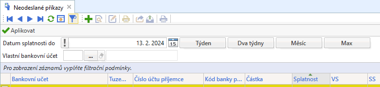 Také v Bankovních službách ASM je několik zajímavých a užitečných novinek. Například přibyla rychlá tlačítka na formuláři „Neodeslané příkazy“, jak ilustruje Obr. 2.