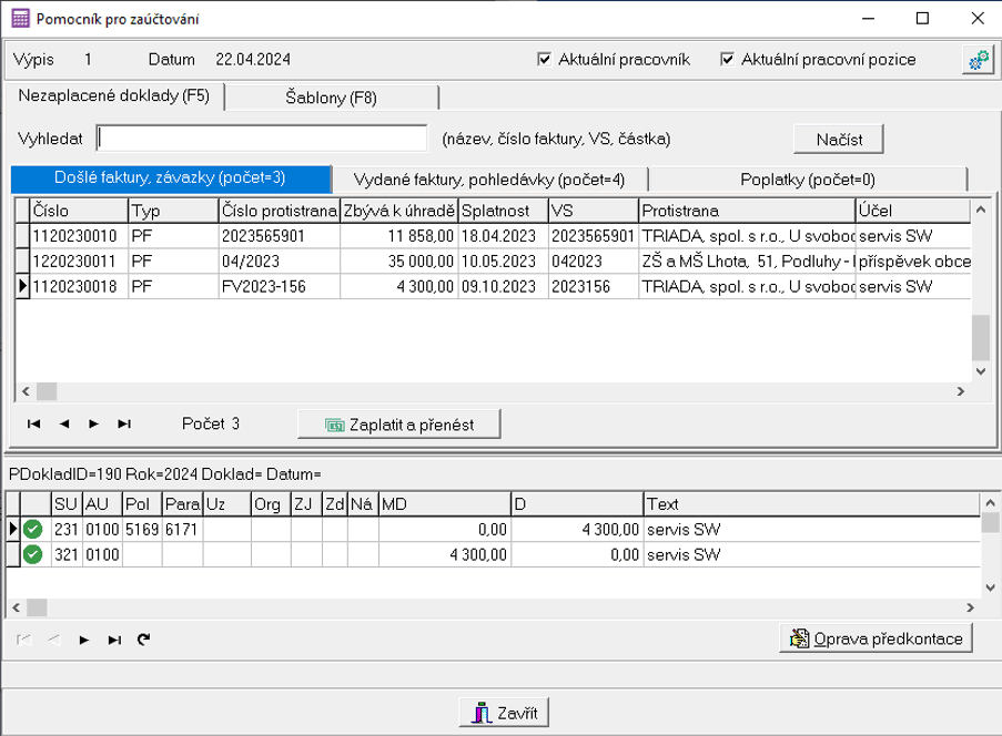 Přehlednější volby i vylepšený pomocník pro zaúčtování