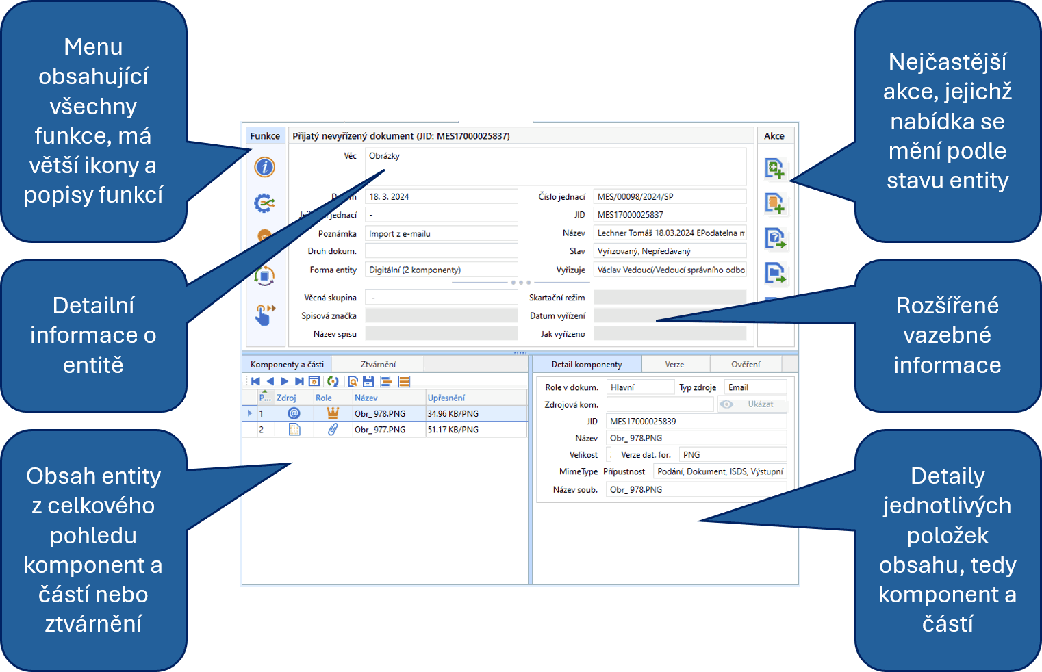 Detail dokumentu a detail spisu se v nové verzi zobrazují ve zcela nové vizuální podobě, která má dvě hlavní přednosti: