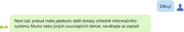 A samozřejmě pořád mějte na mysli, že AI si ráda vymýšlí, takže každou odpověď si ověřujte v příslušném zdroji. Munis AI asistent je připraven vám pomoci s otázkami týkajícími se konkrétních modulů IS Munis. Pokud potřebujete řešit pomocí AI jakékoliv další úkoly, využijte k tomu vždy specializované nástroje, které jsou pro tyto úlohy určené.