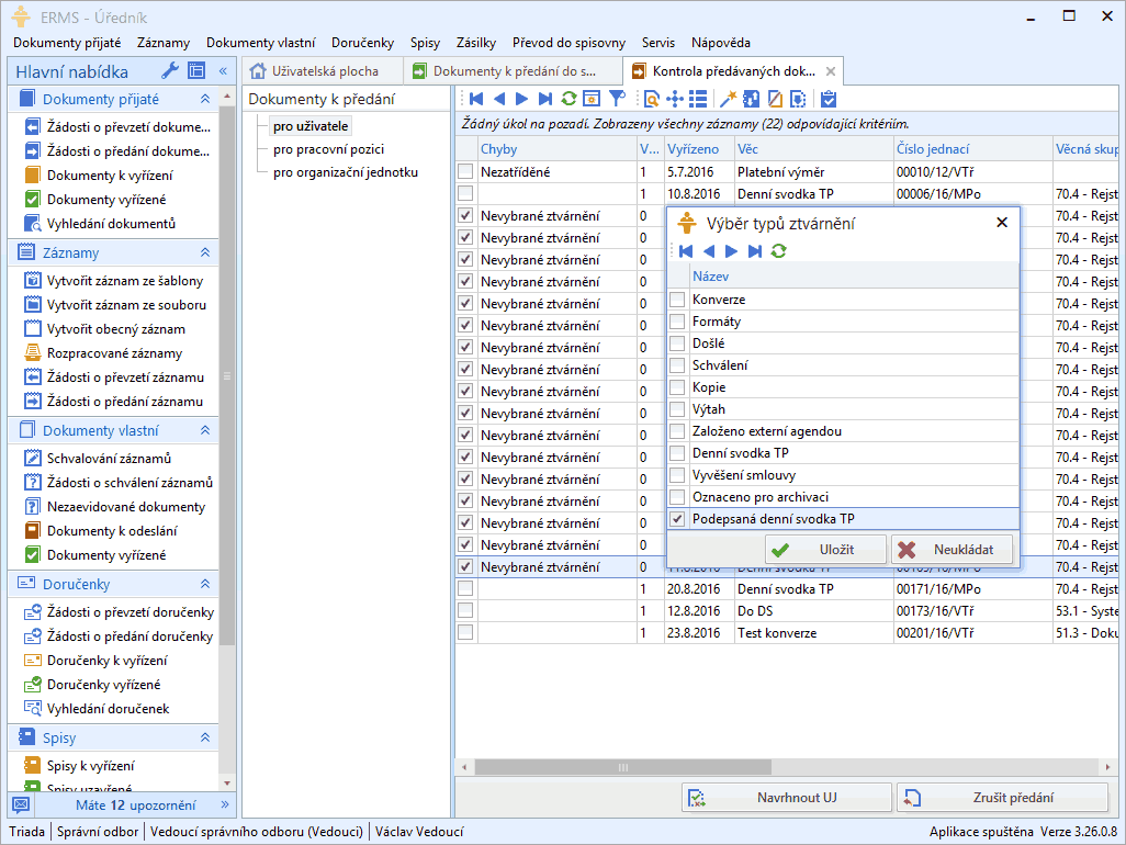 Ať tak či tak, vždy bude platit, že elektronické skartační řízení nelze realizovat bez předchozí přesné evidence, ideálně samozřejmě dlouhodobě vedené v elektronickém systému spisové služby.