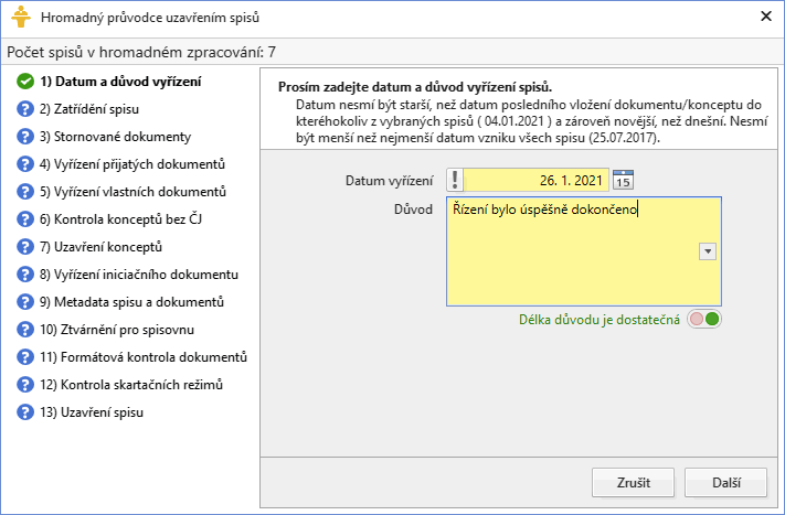 Hromadné uzavření spisů