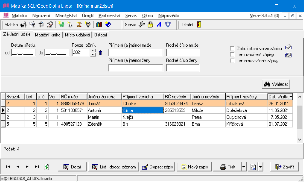 Modul Matrika také umožňuje vést evidenci matričních tiskopisů jako je RL, OL, ÚL, „Vysvědčení o právní způsobilosti k uzavření manželství“ apod.