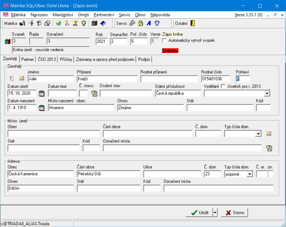 Modul řeší všechny náležitosti vedení matričních agend na počítači ve smyslu zákona 301/2000 Sb. o matrikách, jménu a příjmení, související vyhlášky Ministerstva vnitra č. 281/2019 Sb. a směrnice k jednotnému postupu matričních úřadů při souběžném vedení matričních knih pomocí výpočetní techniky.